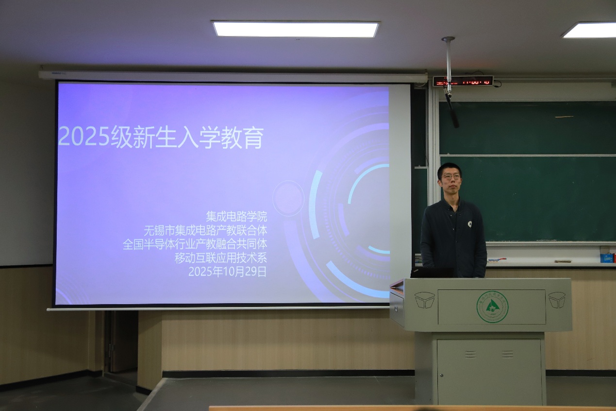 2025年10月29日,无锡科技职业学院集成电路学院在C318教室举办了一场别开生面的新生入学教育活动。本次活动以无锡科技职业学院江苏省产业教授、无锡泛太科技有限公司创始人杨恒博士的讲座开始,同时由移动互联应用技术专业负责人朱玉琨博士系统介绍专业详情,旨在为2025级新生提供专业领域视野,推动产教协同发展,助力新生杨帆启航。移动专业全体新生参加了本次活动。