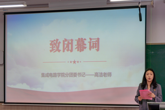 大会最后,集成电路学院分团委书记高洁老师总结讲话。她对所有学生代表的到来并圆满完成议程表示感谢,对大会的顺利闭幕表示祝贺。她指出,学代会是一个民主的大会、团结的大会,希望各位代表在未来的日子积极践行使命,认真落实任务;同时以此次大会作为起点,不畏艰难、勇往直前。