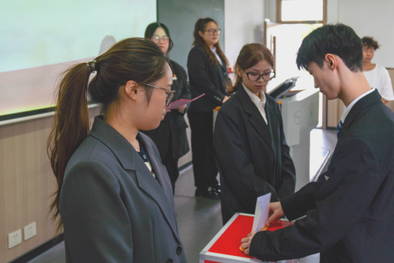 本次大会采取差额选举,并以无记名投票的形式进行民主选举。秉持着公平、公正、公开的原则,各代表慎重且细致地进行选票填写。每一笔都承载着对候选人的深思熟虑,每一票都蕴含着对未来学生干部的深切期待。