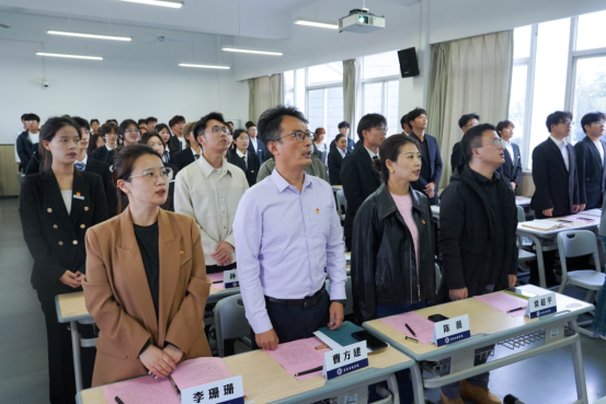 学院党总支书记曹方建老师、校团委副书记李珊珊老师、学院党总支副书记陈薇老师、学工办负责人常超平老师、智能制造学院学生会代表戴欣妍同学,学院全体辅导员老师及学院90余名学生代表共同参会。